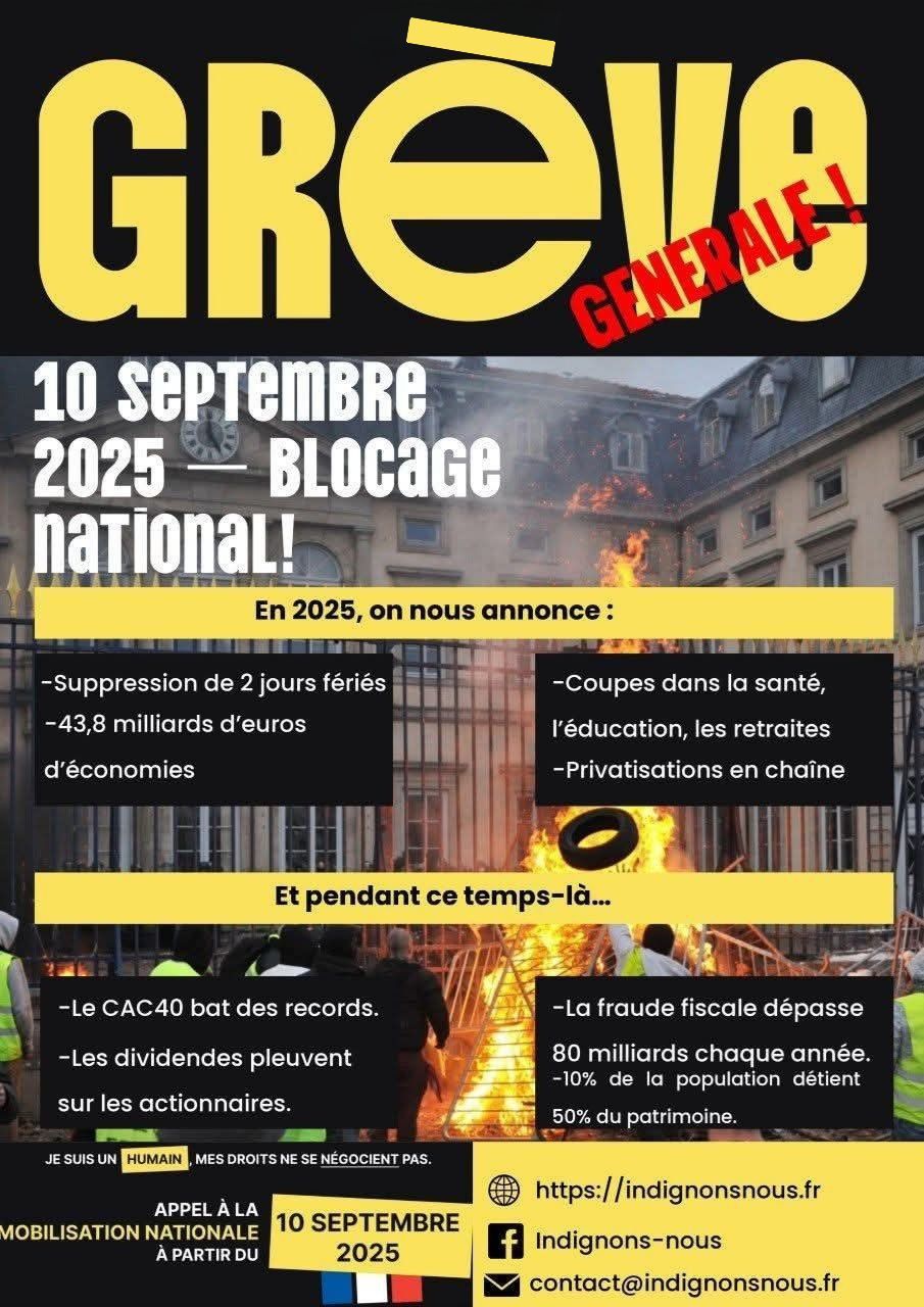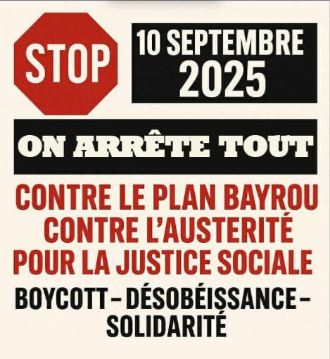 Ces visuels libres sont faits pour être partagés: réseaux sociaux, messageries, affichage local… Le 10 septembre 2025 n'est que le début d'une mobilisation sans précédent. Ne passe pas à côté de l'Histoire ! Chaque partage compte pour que le peuple se soulève. 💡 Astuce : clique droit sur un visuel, puis sur "Enregistrer l'image sous" pour le télécharger.